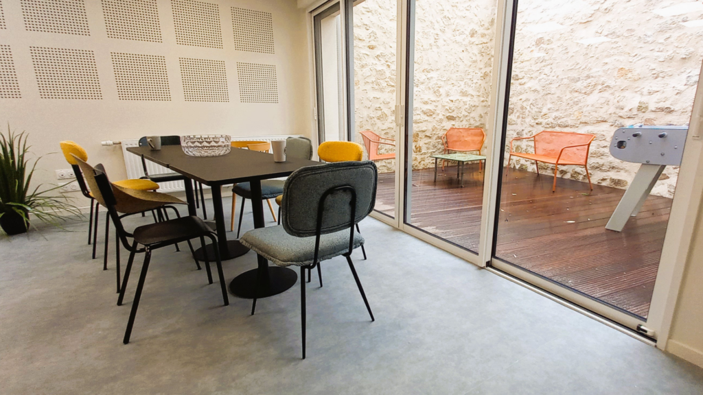 Logements meublés (dont accessibles PMR), espace de coworking, salle de réunion, cuisine partagée